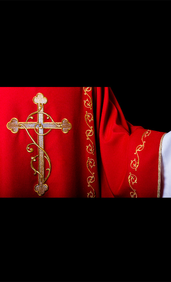 Polyester dalmatic, machine embroidered.